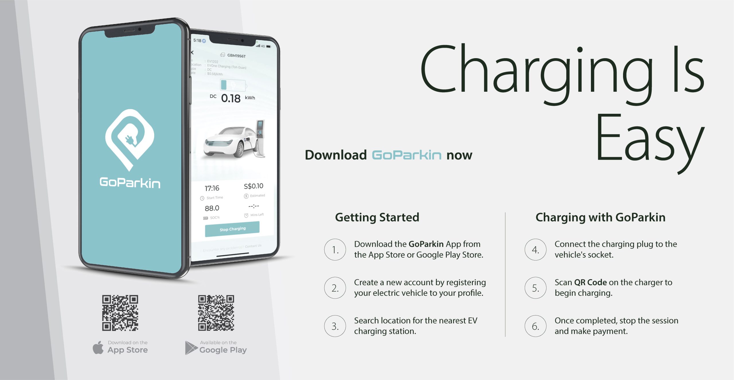 Our fast charging station is powered by the GoParkin App. Please download the GoParkin App to use it.