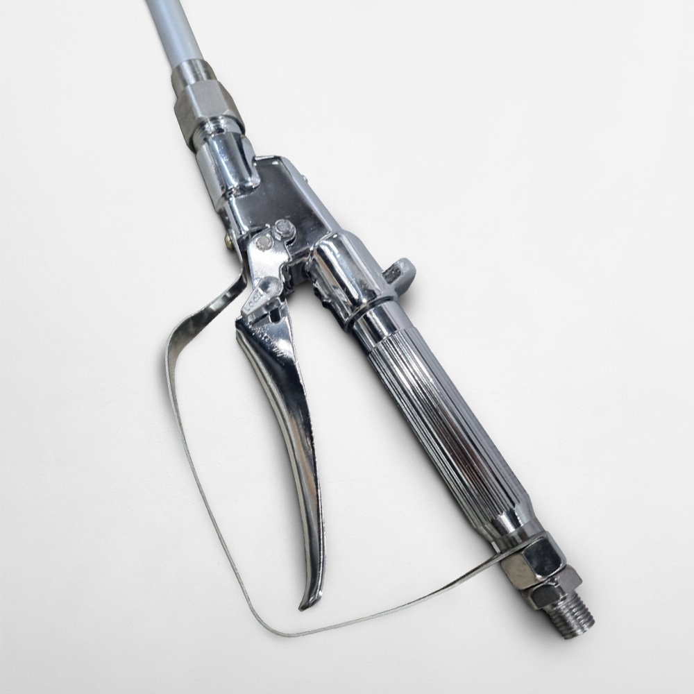 Lance type spray gun for high pressure airless paint sprayer.