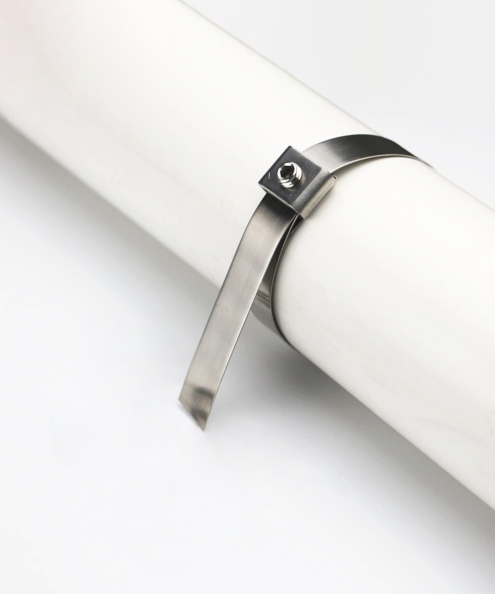 Stainless Steel Screw Buckles for use on banding bands, suitable for use whenever an adjustable, or temporary clamp is required. Buckle is locked by tightening screw with hex key provided in the package.