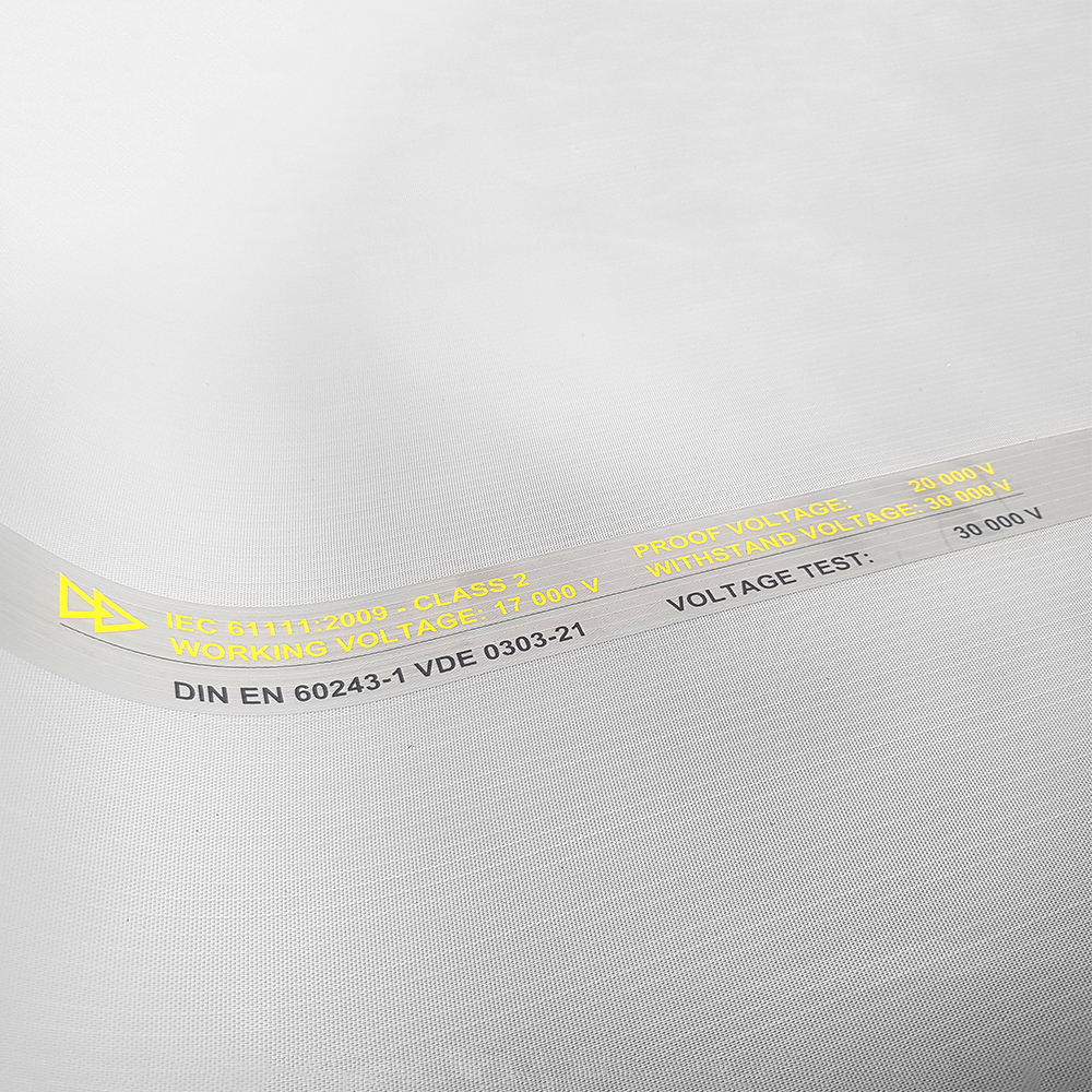 Comes with Test Certificate up to 30kV. High grade rubber compound grey electrical insulation safety matting, tested and stamped to IEC 61111 Class 2. Capable of withstanding voltage of 30kV, test voltage of 20kV and working voltage 17kV.