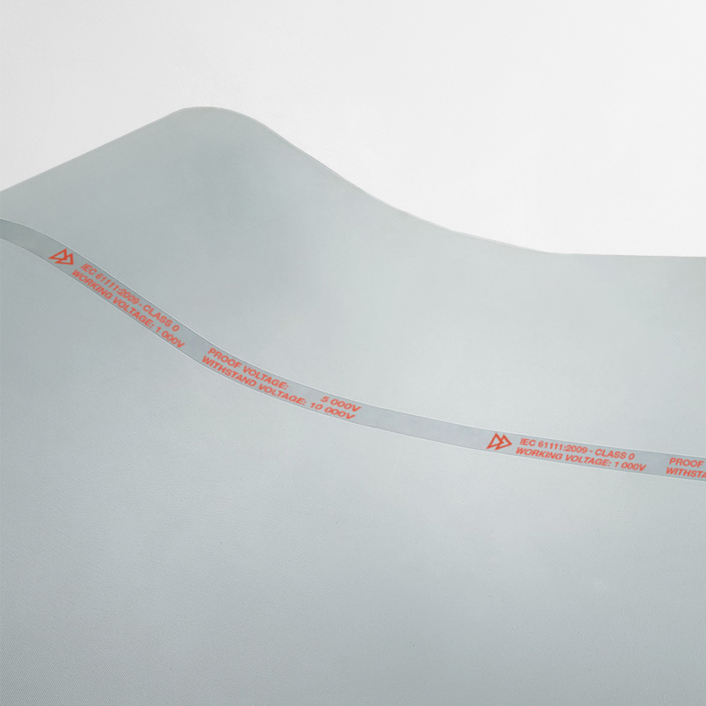 Comes with Test Certificate. Quality natural rubber compound safety matting capable of withstanding the following: dielectric test 7.5kV, surface proof test 5kV, working voltage 1kV. Fully tested and stamped to IEC 61111 Class 0.