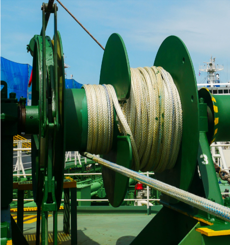 Marine mooring winch on the ship deck.