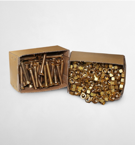 Brass countersunk bolts and nuts are available in a variety of sizes for purchase as well, used for securing the brake lining following vulcanisation (gluing) of the brake lining. To ensure that the bolts and nuts are correctly fastened, a countersunk hole must first be drilled in the brake lining which will require the use of a special countersink drill bit.