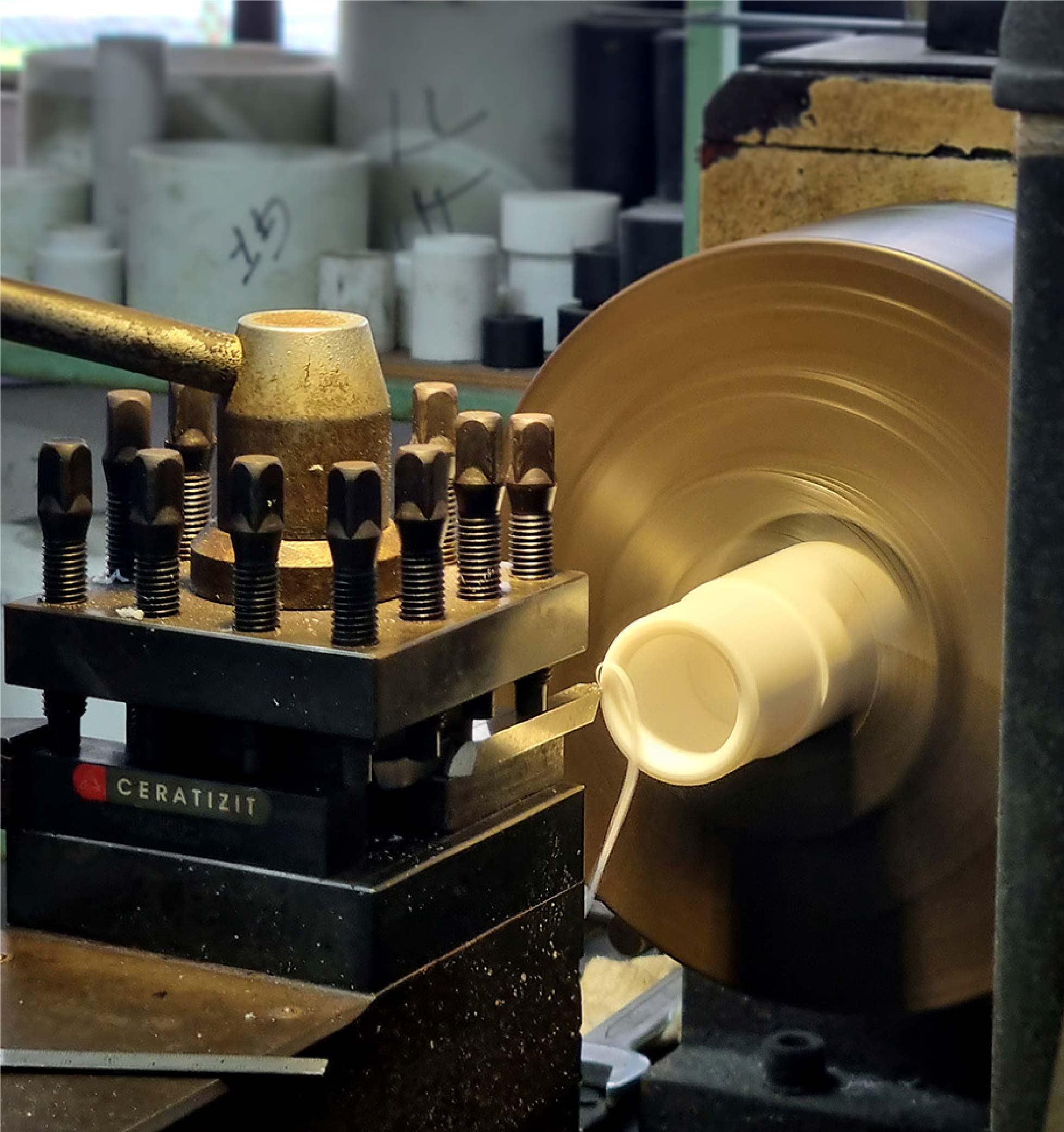 PTFE Valve seat in the process of machining.