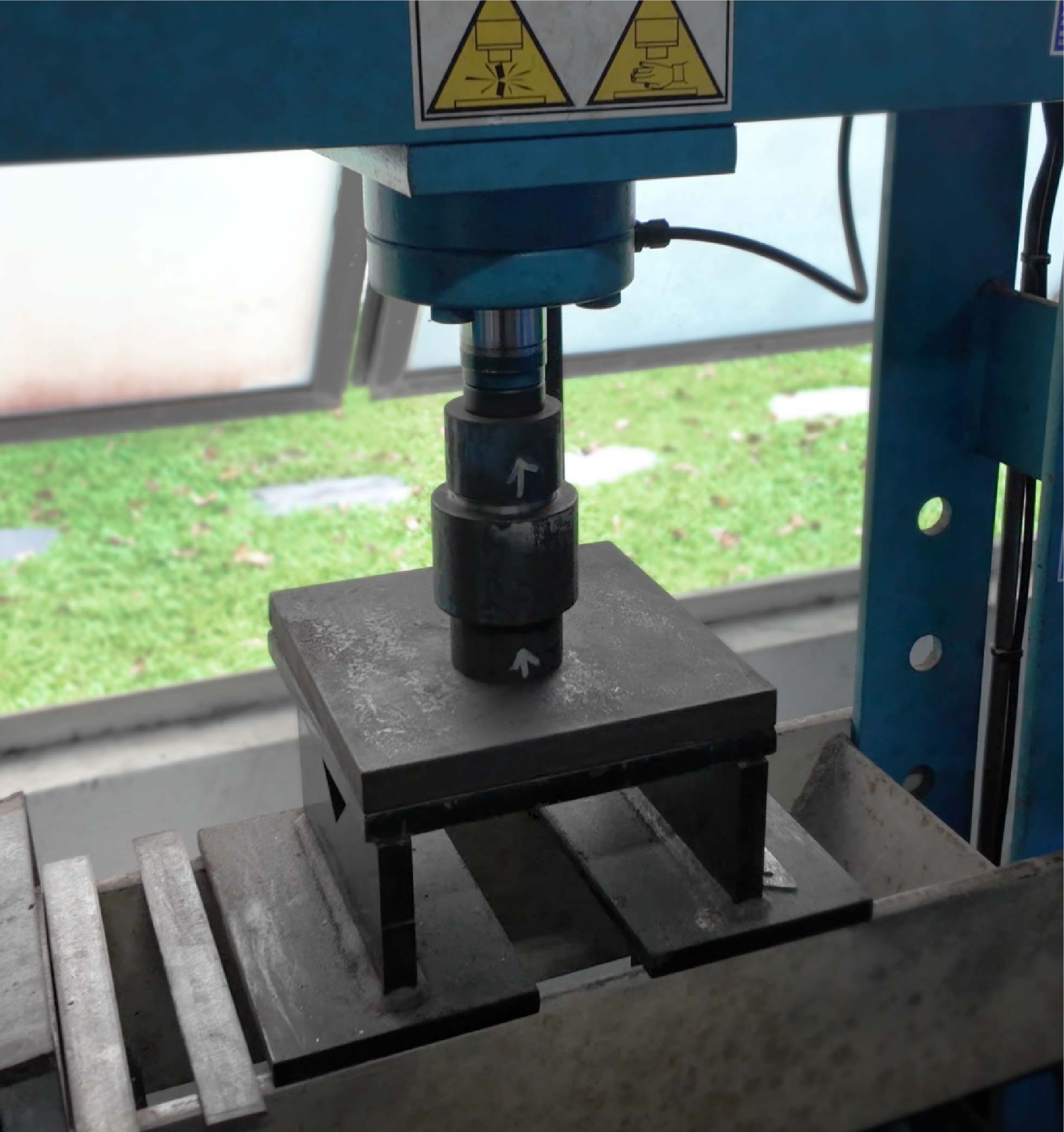 A compressive machine is used to compact the material in the mold.