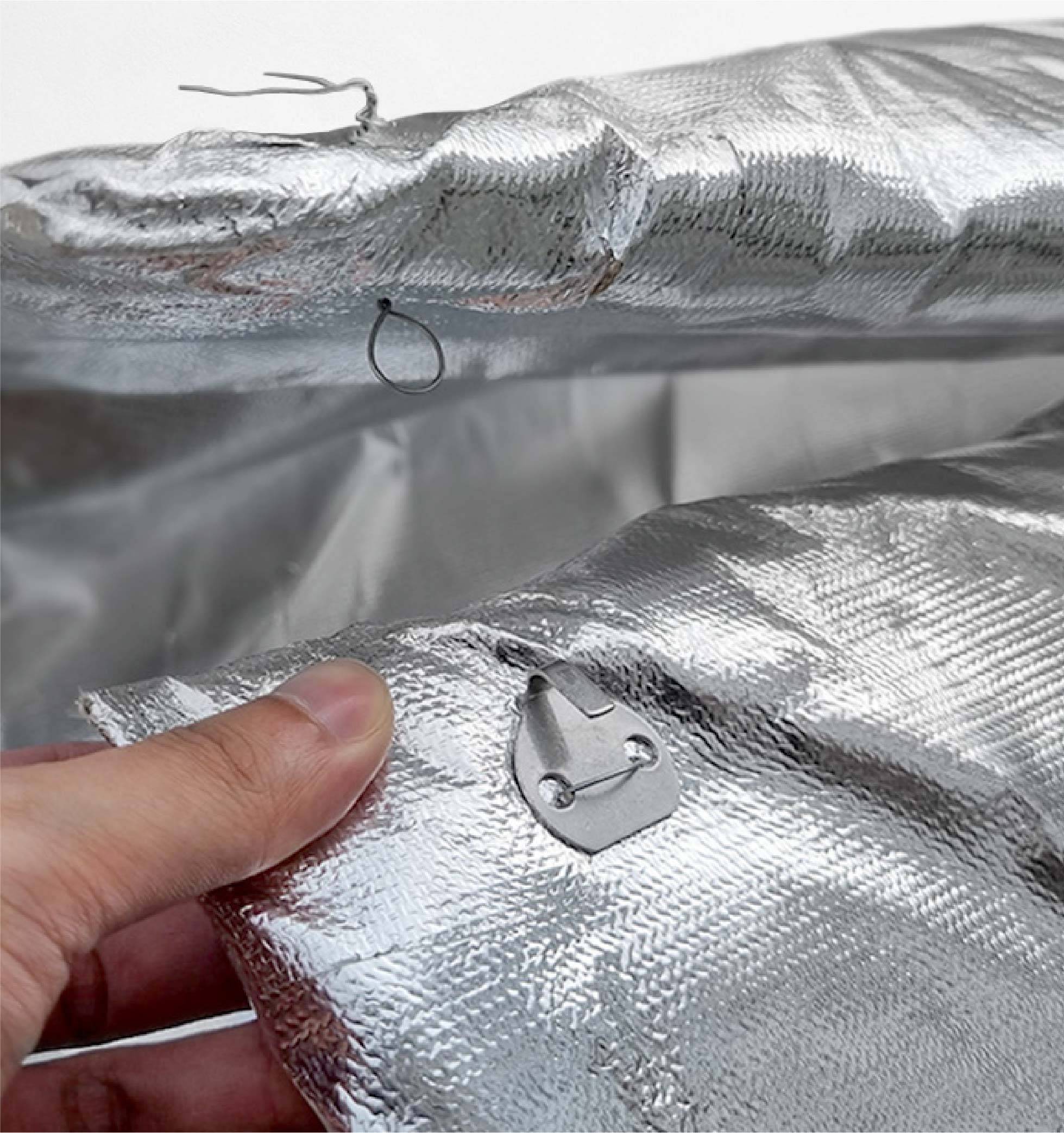 To create a hook-on mechanism, we have affxed stainless steel lacing hooks and washers to the mattresses. This design allows for quick installation and removal during maintenance or inspection tasks. Not only does it provide effective insulation for your equipment, but it also helps save time and reduce maintenance costs.